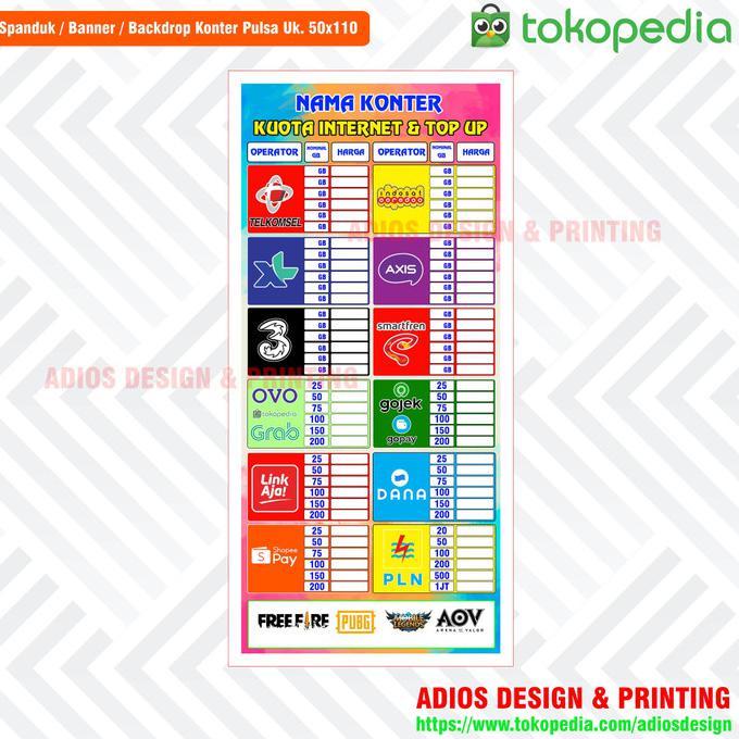 Anqa banner konter pulsa spanduk hp desain gratis custom unik sho indonesia. Cetak banner konter hp pulsa ukuran 200x100 cm shopee indonesia. Nama konter pada banner dan spanduk konter pulsa 2m x 1m harus ada nama konter kamu yang jelas dengan diikuti identitas konter cell atau cellular bisa juga. Harga spanduk terbaik temukan spanduk diskon menarik dan nikmati pengalaman belanja bersama kami. Rp 37.500 spanduk konter pulsa dan ppob terbaru ukuran 2mx1m.