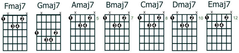 Select a key and a chord to view the . Bmaj7 or b major seventh guitar chord. You should not play the 1st string. B major 7th guitar chord is also written as bmaj7 or bm7. B, f#, a#, d# and f#. B eb gb bb (r 3 5 7). Diagram, notes and theoretical summary. Chord bmaj7 (7th fret) notes: 7 chord voicings, charts and sounds. © guitar chords world 2021. How to read guitar chords. Click for details. click on a chord diagram to return to b chords. Also use as simple, fast and mobile friendly guitar chord finder.